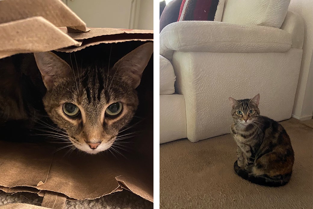 Right now, I’m enjoying the foster kitty life in Los Angeles, and my foster parent has seen me completely transform from shy girl to confident kitty! I’ve found my voice, and we love to chat with each other about our days. I also love playtime, so as soon my people take out a laser pointer or feather wand toy, I am ready to give chase! I have some lovely feline foster siblings as well, and we have a blast playing with each other.